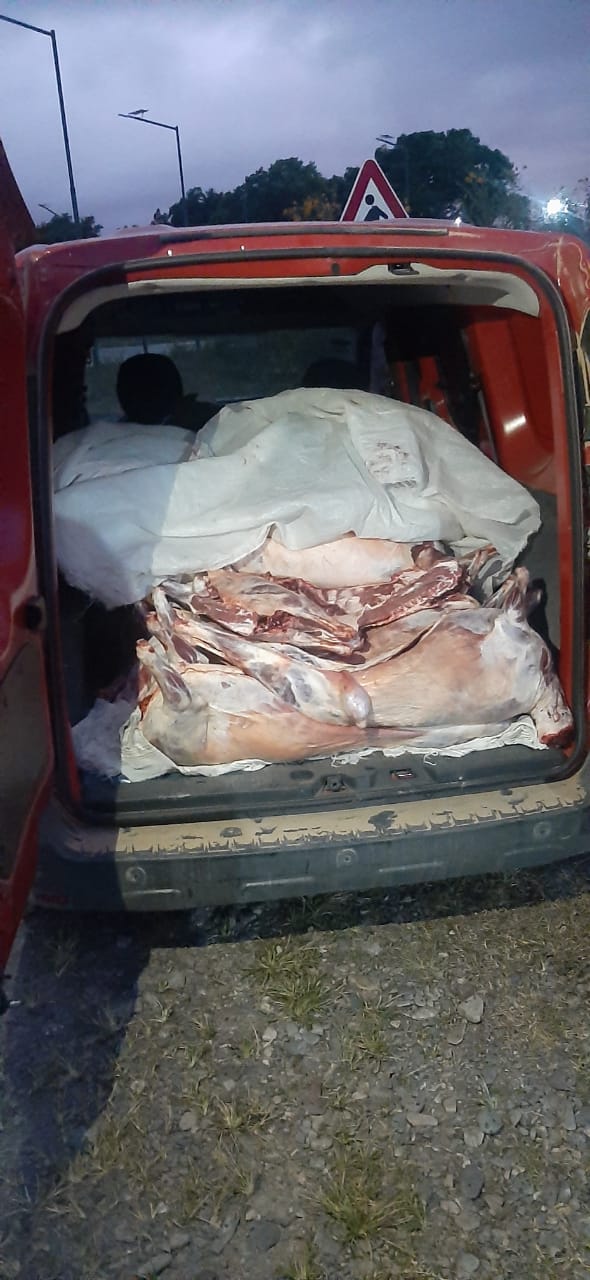 Efectivos de Seguridad Vial detectaron un vehículo utilitario que trasladaba cane porcina y de llama, sin cadena de frio ni documentación necesaria para el tratamiento y traslado de productos alimenticios.