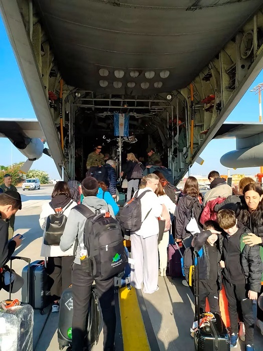 En este primer viaje, el Hércules trasladó a un total de 49 argentinos, entre niños, adultos mayores y jóvenes que se encontraban en Israel cuando se desató el conflicto.