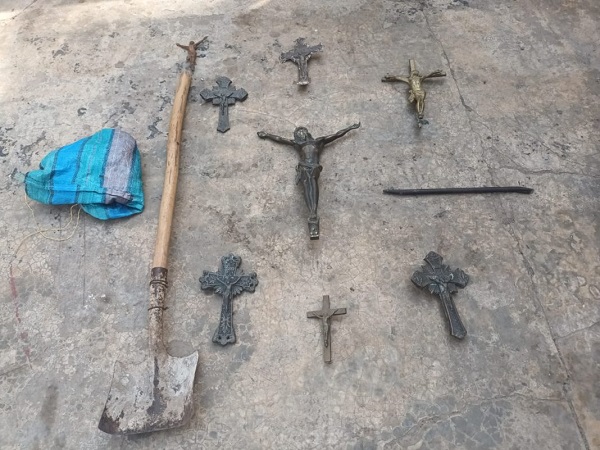 Logrando la aprehensión de tres personas, dos hombres y una mujer que estarían involucrados en el hecho denunciado. Al momento de la aprehensión de los sospechosos, se procedió al secuestro de 8 cruces metálicas, una barreta y una pala, aparentemente elementos utilizados para la sustracción del metal.