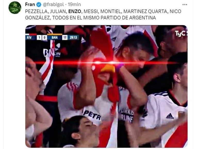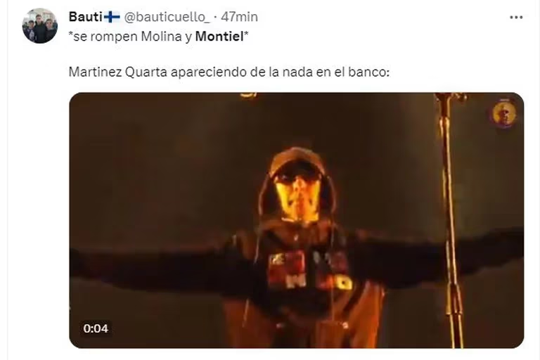 El equipo albiceleste sufrió contratiempos y tras el cambio de Gonzalo Montiel en el primer tiempo, en el complemento debió sustituir también por problemas físicos al Cuti Romero. Los ingresos de Martínez Quarta y Germán Pezzella provocaron una catarata de memes de los hinchas de River Plate, que se mostraron orgullosos por el pasado en el Millonario de los defensores sumados a Enzo Fernández y Julián Álvarez quienes también estaban en el campo.