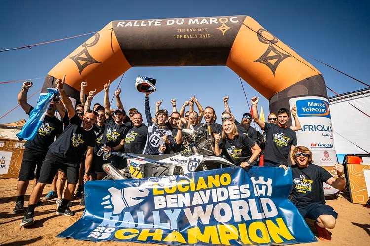 El salteño Luciano Benavides le entrega a Argentina el primer Campeonato Mundial de Rally Raid W2RC con un año 2023 inolvidable. El piloto de Husqvarna culminó en 2do lugar el Rally de Marruecos, sellando su cuarto podio en cinco fechas en Motos que tuvo el torneo, desactivando las posibilidades de Toby Price (KTM).