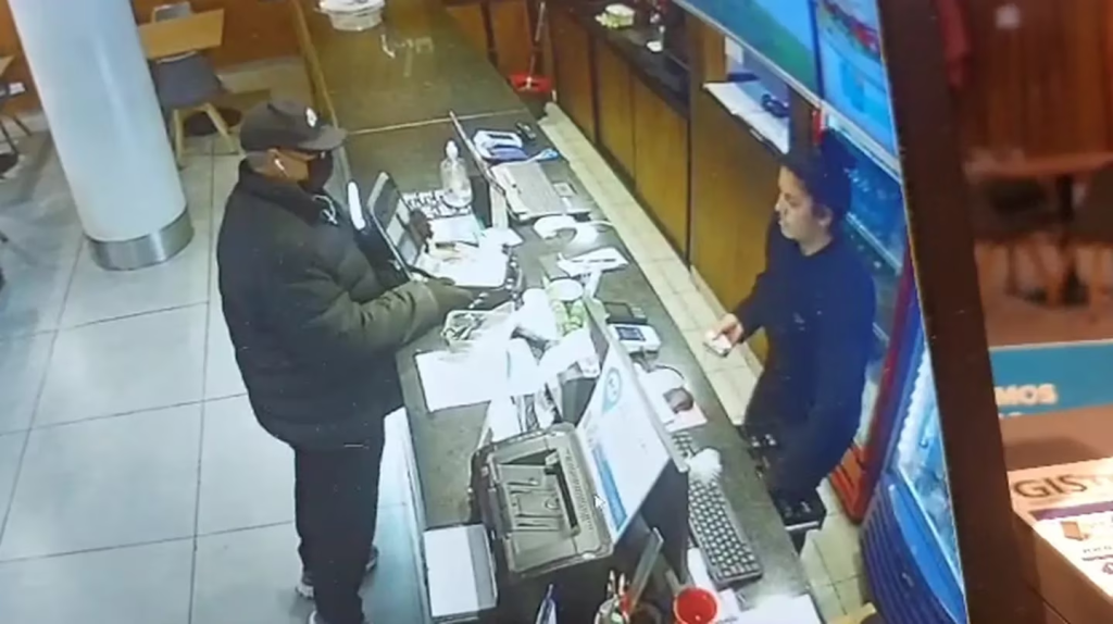 El gesto de la encargada, exhibido en una de las cámaras de seguridad, fue de sorpresa y temor. El “ladrón de la valija” sólo expresó cuatro palabras de manera contundente: “Dame toda la plata”.