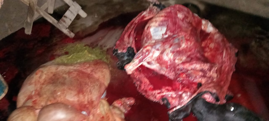 Posteriormente, luego de haberse dado intervención a la Fiscalía Penal N° 1 y el Juzgado de Garantías N° 1, se realizó un registro del inmueble, detectando que en una de las habitaciones se encontraban los restos del animal faenado.