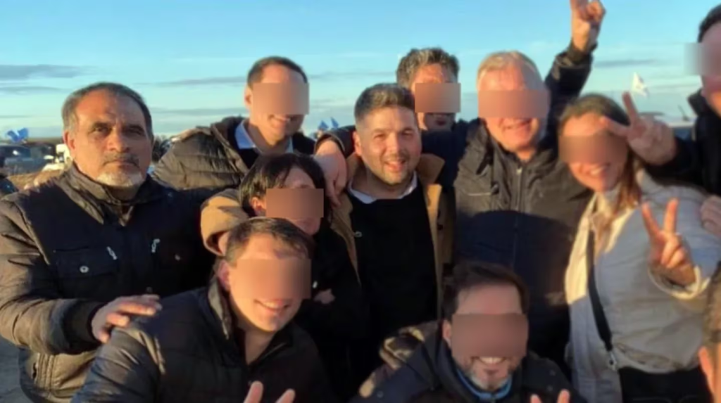 “Chocolate” Rigau junto a Facundo Albini, supuesto jefe de la asociación ilícita, y militantes del Frente de Todos.