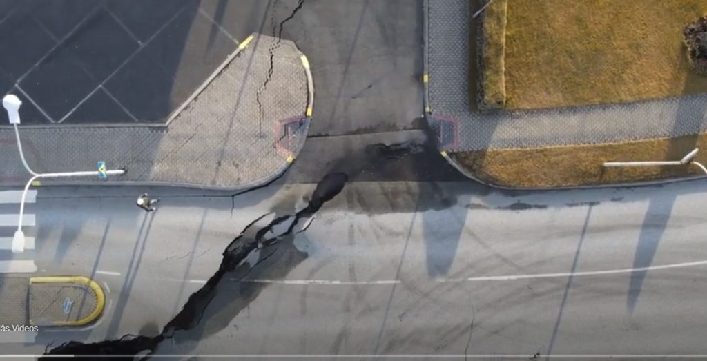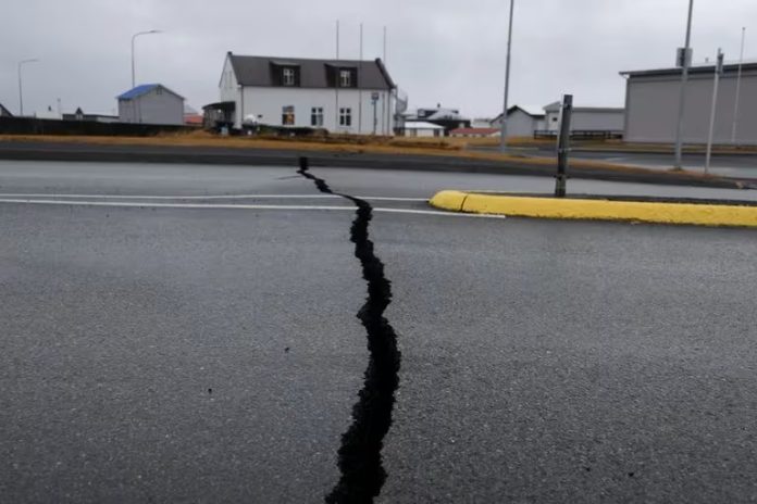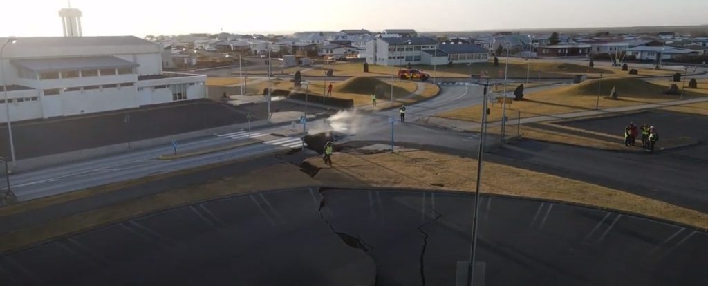 Una enorme grieta de 15 kilómetros partió una calle en una ciudad pesquera islandesa amenazada por la actividad volcánica.