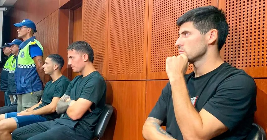 Los jugadores Osorio, Cufré y Florentín (falta Sosa) en una de las primeras instancias penales posteriores a la denuncia.