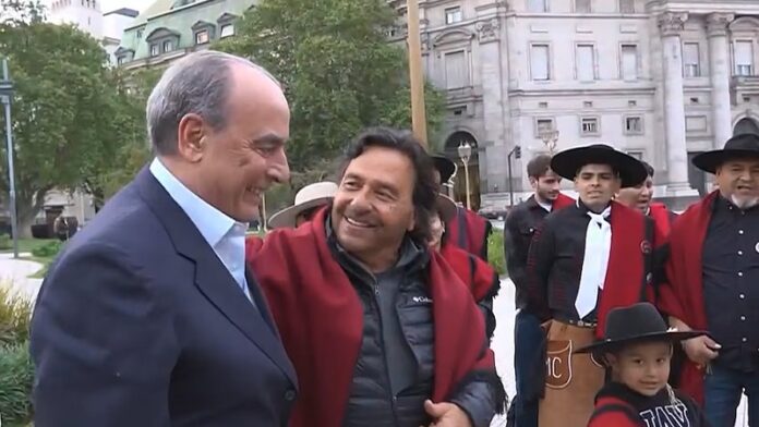 El mandatario provincial viajó al centro de la Ciudad de Buenos Aires y se mostró junto a un nutrido grupo de gauchos con el fin de visibilizar la situación ante la falta de respuesta del Ejecutivo. Sin embargo, automáticamente, quien se acercó a saludarlo fue el jefe de Gabinete, Guillermo Francos.