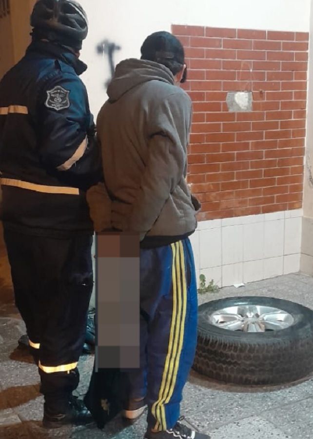 Esta madrugada, en el marco de un patrullaje preventivo en calles Caseros e Islas Malvinas, Bici policías detectaron a un individuo sustrayendo una rueda de auxilio de una camioneta estacionada en el lugar.