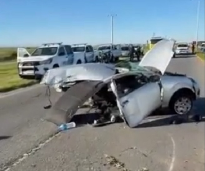 El choque fue tan violento que el vehículo se partió al medio tras el impacto y quedó tirado, destruido, sobre el carril contrario. La otra mitad quedó destrozada al costado de la ruta.
