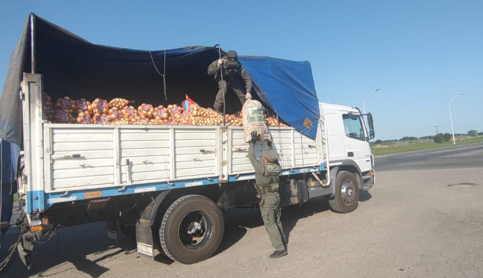 Ayer, gendarmes del Escuadrón 46 “Rosario” desplegados sobre el kilómetro 58 de la Ruta Nacional N° 34, detuvieron la marcha de un camión con su semirremolque, en el que trasladaban un cargamento de cebollas.