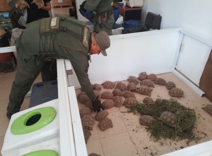 Al momento de la inspección, los funcionarios detectaron la presencia de animales dentro de bolsas tipo arpillera. Pudieron constatar que se trataba de 166 tortugas terrestres y 10 aves (nueve “cabecita negra” y un “picotero de collar”).