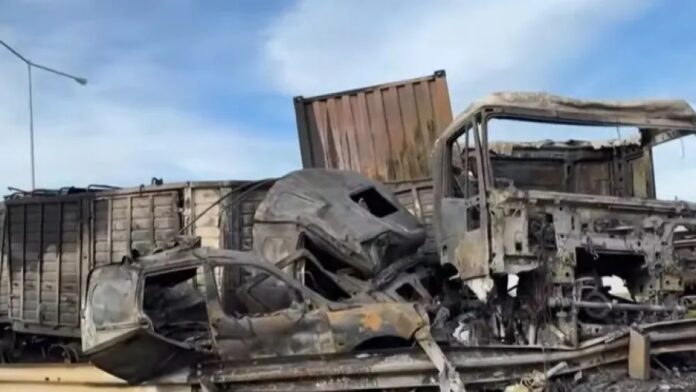 “Las imágenes son terribles. Se ven las dos cabinas de los camiones completamente carbonizadas y el utilitario debajo de ellos. Los ocupantes murieron en el acto”, describió Costichi desde el lugar del hecho.