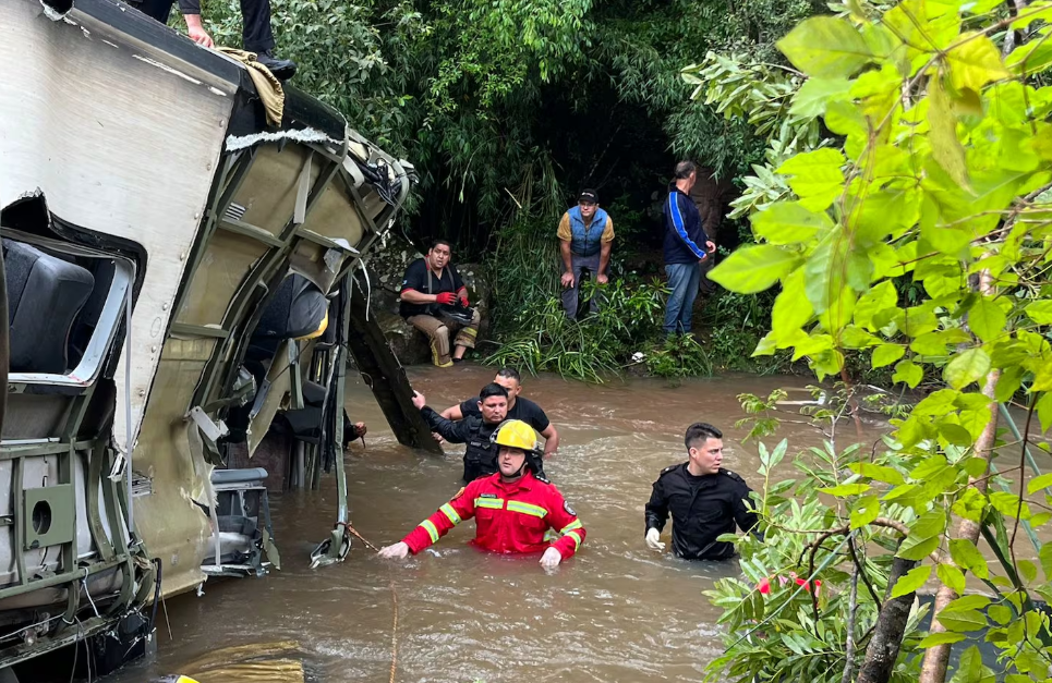 El ómnibus perdió el control, atravesó el guardarraíl del puente y cayó al cauce del arroyo Yazá, a varios metros de profundidad. En tanto, el auto quedó destrozado sobre la banquina, a escasos metros del lugar del choque.