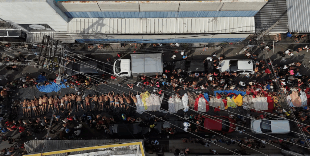 En la madrugada de este miércoles, residentes del Complexo da Penha, en la zona norte de Río de Janeiro, trasladaron más de 50 cuerpos a la plaza São Lucas de la comunidad. A primeras horas de la mañana llegó Defensa Civil al lugar para llevarse los cuerpos.