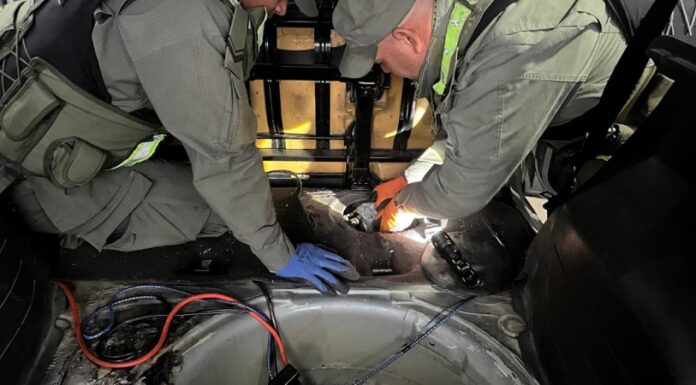 Al momento de la inspección, el can detector de narcóticos “Lev” de manera exaltada alertó a los funcionarios de la posible presencia de estupefacientes dentro del vehículo.