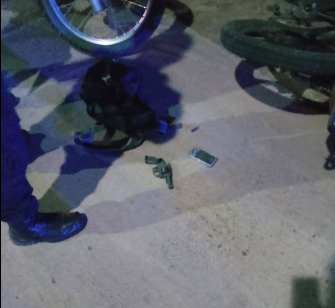 Al revisar sus pertenencias en la mochila se pudo comprobar que llevaba un celular, una balanza de precisión y un revolver calibre 22, además, la moto presenta la numeración adulterada y el motor no sería el original.