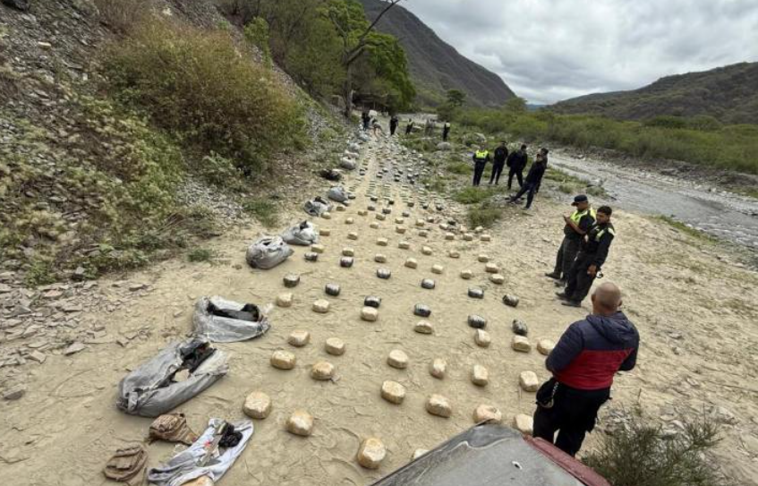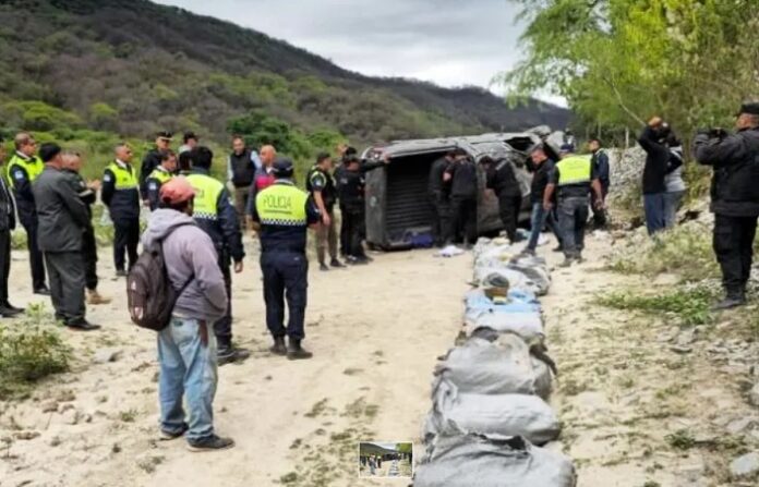 “Le cierran el camino a la altura de Chuscha y nuevamente hay un intercambio de disparos con el personal de la comisaría local. Finalmente, la camioneta cae a un precipicio, donde se logra reducir a dos personas, secuestrar armas de fuego y los 301 kilos de droga que transportaban”, precisó Girvau.