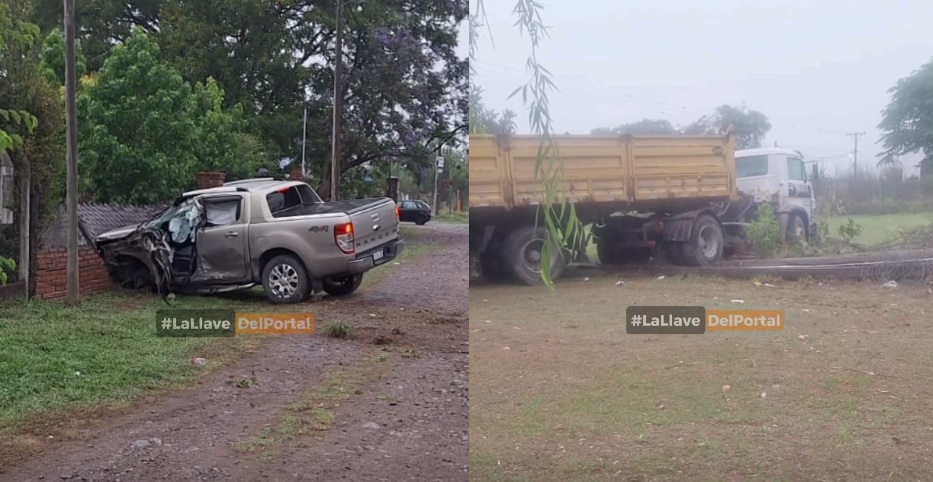 El camión se salió de la ruta y casi termina dentro de una vivienda, mientras que la camioneta impactó contra la pared de una casa.