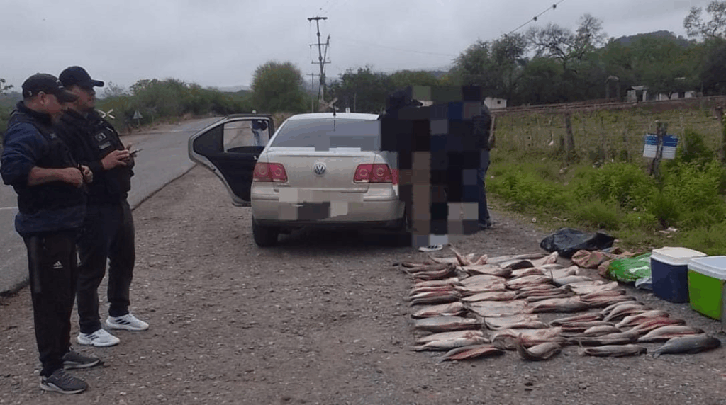 Esta mañana, efectivos de Seguridad Vial y de la División Lacustre y Fluvial en el marco de un control vehicular detectaron un auto con cuatro ocupantes trasladando 70 pescados de manera irregular en Lumbreras.