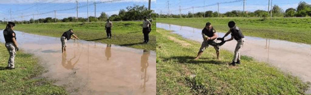 En el lugar, los efectivos verificaron la situación y procedieron a la captura segura del animal, que fue trasladado y liberado a su hábitat natural.