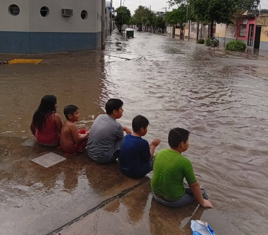 Uno de los barrios afectados fue en el Loteo Social donde muchas familias quedaron atrapadas entre el barro y el desborde, mirando cómo sus pertenencias se arruinan mientras intentan salvar lo poco que pueden.