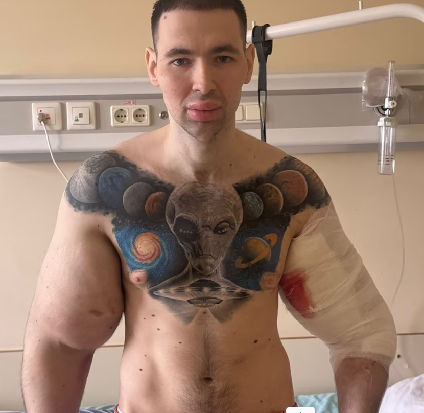 Kirill Tereshin, apodado el “Popeye ruso”, famoso por sus bíceps gigantes tras inyectarse vaselina y synthol, sufre una infección severa que avanza rápidamente y pone en riesgo su vida