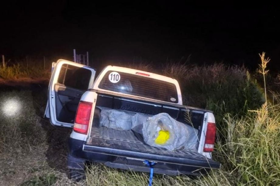 Los gendarmes, que iniciaron la persecución, hallaron a unos kilómetros la camioneta Amarok abandonada y atascada en una alcantarilla, sobre un camino alternativo a la ruta 5. En el interior del rodado, había cinco bultos, dos en el asiento trasero y tres en la caja, que resultaron contener un total de 198 kilos cocaína.