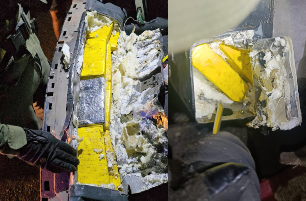 Ante la marcación positiva, los funcionarios tomaron contacto con la Fiscalía Federal Descentralizada de Rafaela, que autorizó el traslado del operativo hacia el asiento de la Subunidad. Allí, en presencia de testigos, los efectivos profundizaron la inspección y detectaron que en el baúl y en los zócalos se ocultaban 100 panes que contenían cocaína.