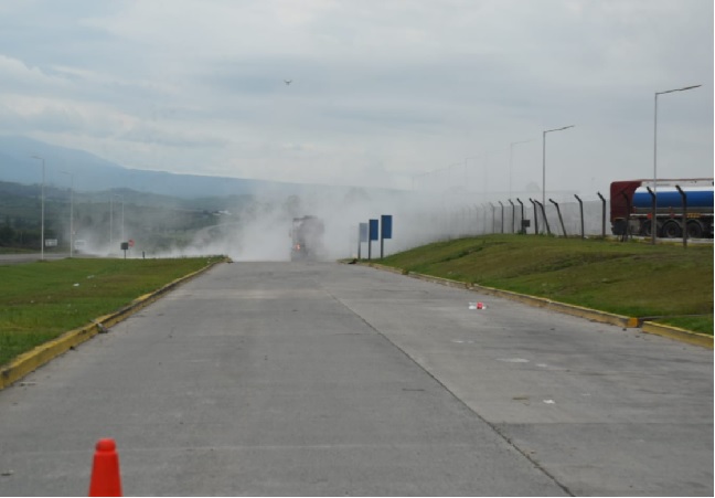 La Ciudad Termal se encuentra en alerta máxima luego de que un camión cisterna sufriera un importante derrame de ácido clorhídrico esta mañana, a escasos metros de una estación de servicio ubicada en un punto neurálgico de la ciudad. Alrededor de las 6:40 horas la alerta llegó a Bomberos Voluntarios de Rosario de la Frontera se hizo cargo y fueron los primeros en intervenir para que luego se sumen los otros organismos mientras se conformó el comando de emergencias para avanzar con el procedimiento.