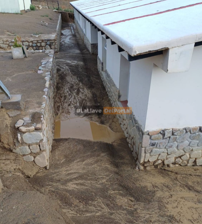 “Durante la noche ingresó un poco de lodo con la tormenta que tuvieron. Este lodo llegó hasta la puerta de la escuela, sin provocar mayores daños. La puerta quedó bloqueada y se tuvo que utilizar otra salida. Si bien no se afectó la provisión de agua, en estos momentos está saliendo turbia. No hay reportes de viviendas ni personas afectadas hasta el momento”, contó el director de la escuela.