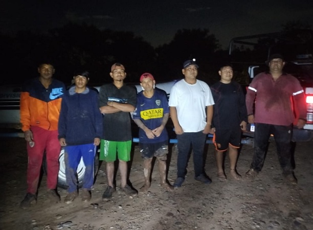 La situación fue alertada por un familiar en la dependencia policial, informando que los damnificados habían quedado varados debido a la crecida del río Santa María en la localidad de Pichanal.