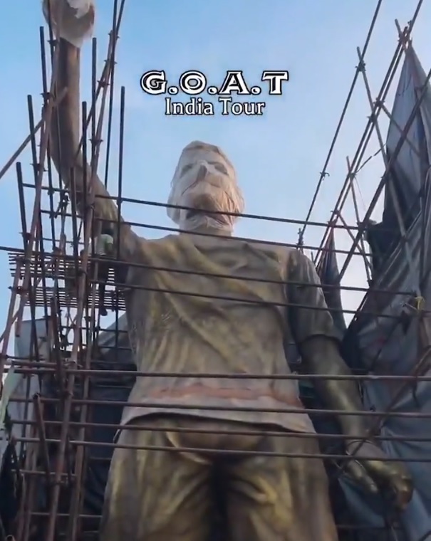 Lionel Messi se prepara para develar una imponente estatua de 21 metros de altura en la India, en el marco de una gira especial denominada “GOAT Tour”, organizada tras sus recientes logros con Inter Miami. Según informó BBC, la escultura será presentada en la ciudad de Calcuta este sábado, marcando el inicio de un recorrido que llevará al futbolista y a dos de sus compañeros de equipo, Luis Suárez y Rodrigo De Paul, por varias ciudades del país asiático.