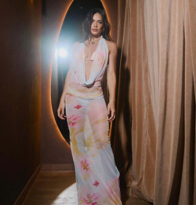 Por debajo del vestido, dejó ver una microbikini en tonos claros, visible a través del tejido translúcido. Para completar la apuesta, la actriz llevó el pelo suelto con ondas naturales y un make up en tonos neutros, manteniendo el foco puesto en la prenda principal.