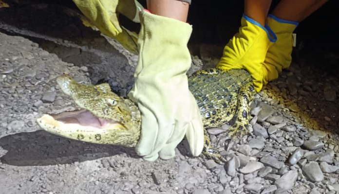 La intervención se realizó esta madrugada, luego de la difusión en redes sociales que alertaban sobre la presencia de yacarés en esa zona.