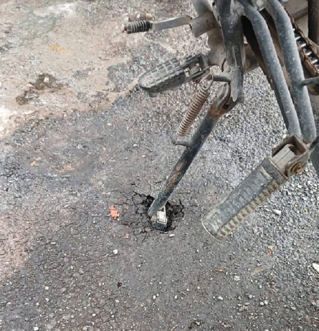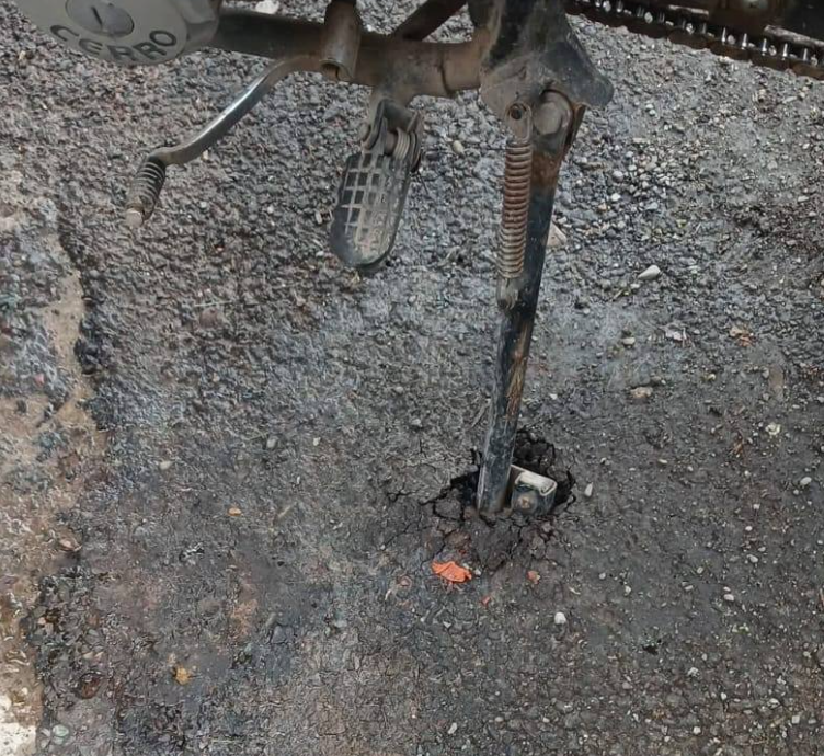Una postal insólita volvió a poner en foco el estado de las obras públicas en Campo Quijano. En la calle 25 de Mayo, a pocas semanas de haberse inaugurado un nuevo tramo de bacheo, un vecino apoyó la pata de su moto y el asfalto cedió de inmediato, generando una grieta visible en el suelo.