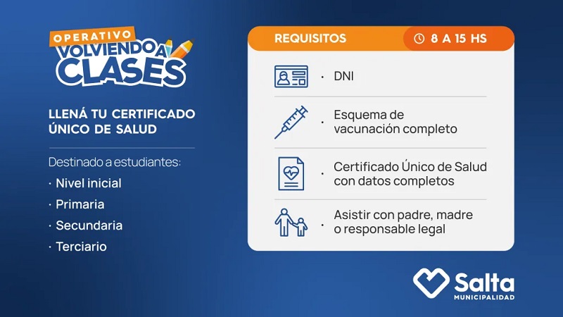 La atención será por orden de llegada y deben concurrir con DNI, esquema de vacunación y formulario con los datos de cada alumno completados previamente.