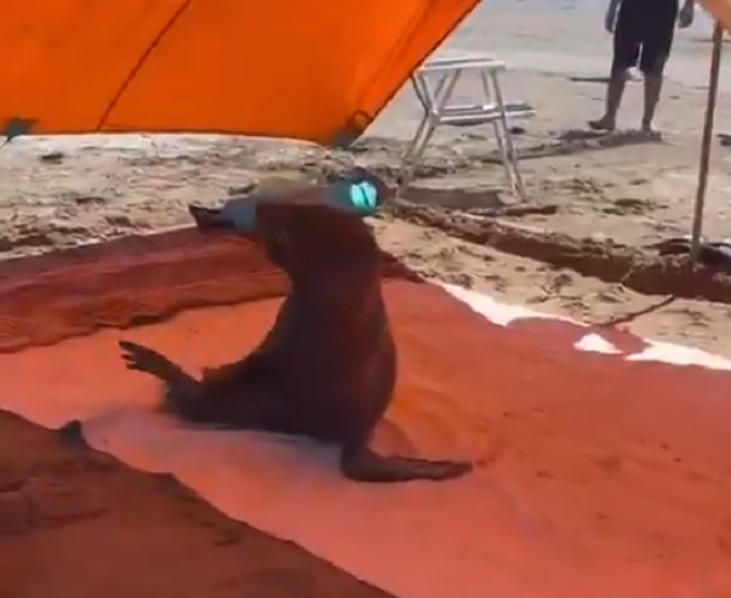Un momento tan inesperado como divertido se vivió en una playa, donde un lobo marino bebé sorprendió a todos al llegar a la carpa de un hombre que se encontraba instalada sobre la arena.