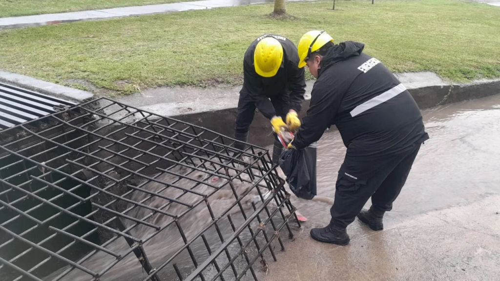 El municipio trabaja para prevenir incidentes que puedan ser ocasionados por las tormentas. Esta tarde, se limpiaron rejillas de desagües pluviales, además, se retiró una rama de gran porte que estaba a punto de caerse en el natatorio Perón.