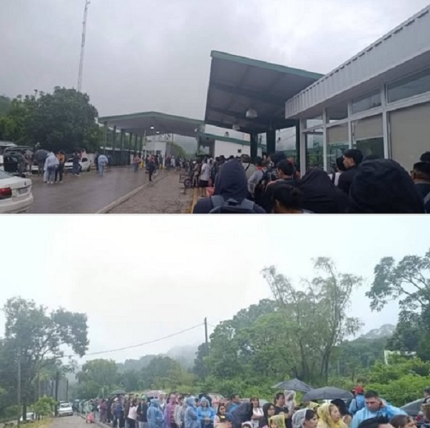 Las filas bajan desde el tinglado de Gendarmería por ruta hasta cerca del ingreso a zona urbana de Aguas Blancas