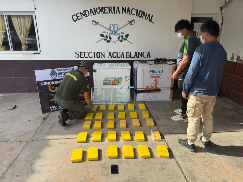 Los efectivos del Destacamento “Móvil 5” con apoyo de la Sección “Agua Blanca”, dependientes del Escuadrón 20 “Orán”, desplegados en la zona fronteriza con el país vecino cuando notaron a un hombre que transportaba un freezer de mediano porte sobre su espalda.