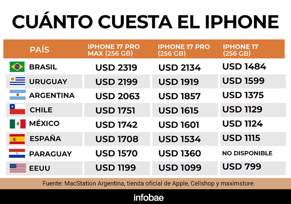 En ese contexto, el análisis sobre si conviene comprar el iPhone 17 Pro Max dentro del país o fuera de la Argentina se apoya en una comparación directa de precios, impuestos y condiciones comerciales vigentes en cada mercado.