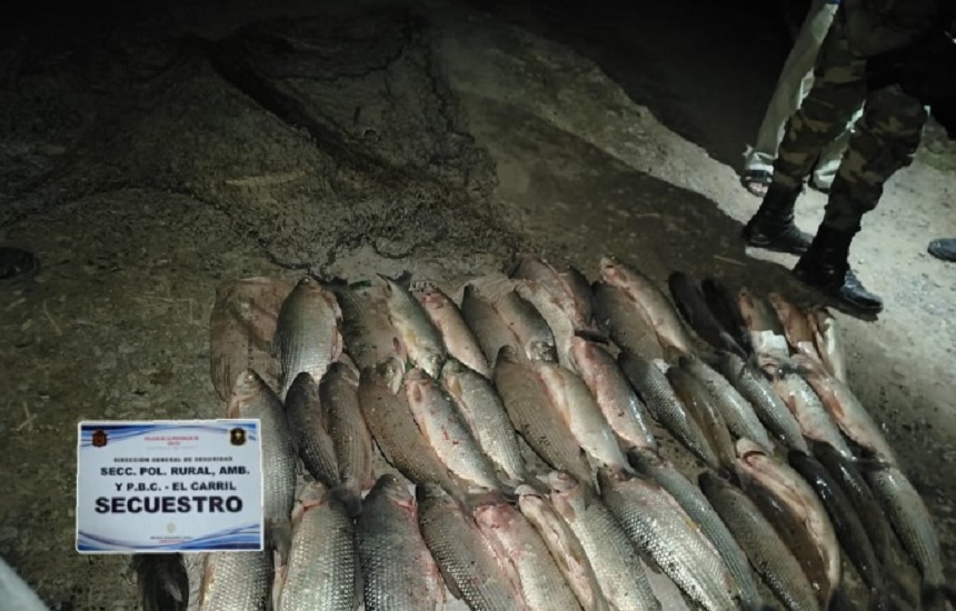 Detienen a dos depredadores con redes y 60 sábalos en San Agustín