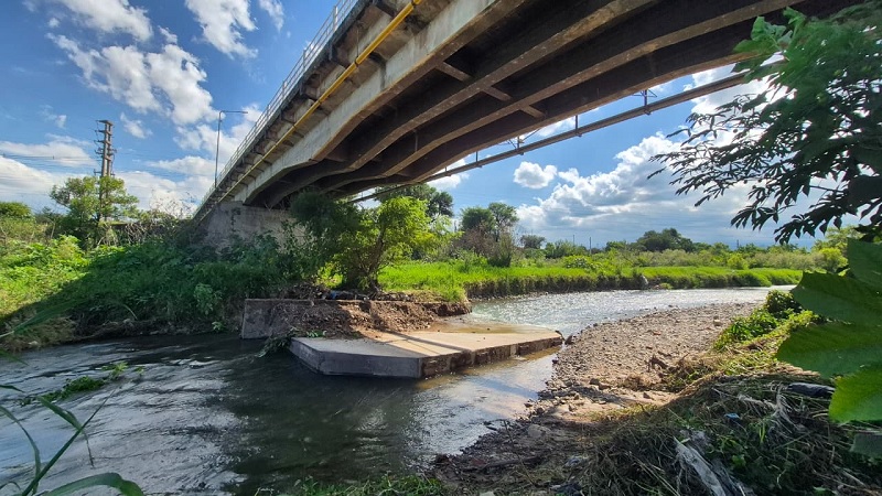 Se cayó uno de los pilares que sostiene el viejo puente sobre en Rio Arenales en el acceso al Barrio Santa Lucía en la avenida Solís Pizarro.