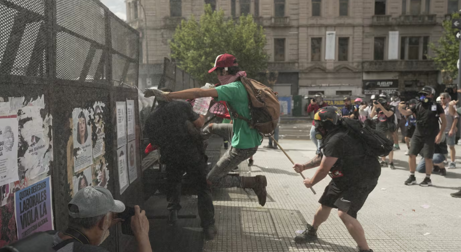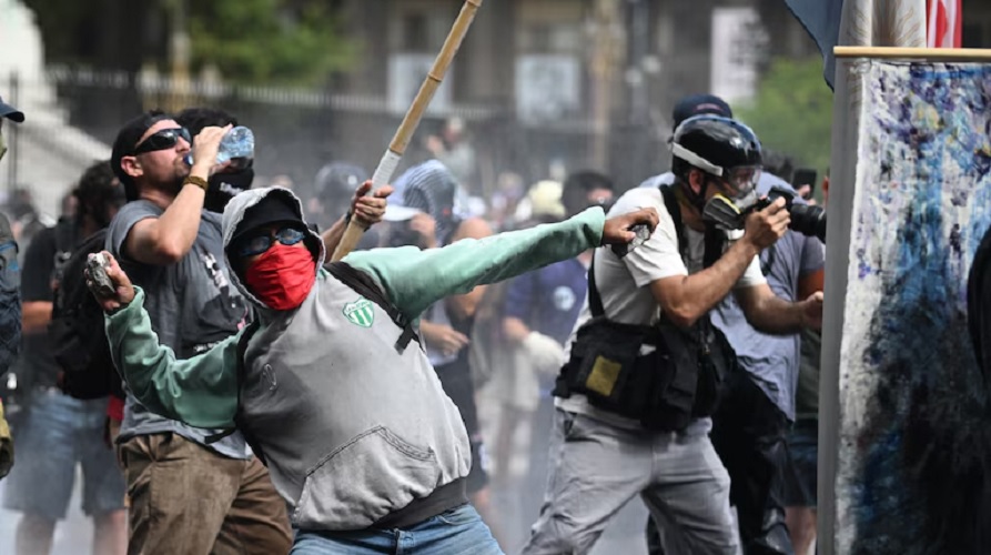 Grupos de izquierda rompieron las veredas para lanzarles piedras a los policías.