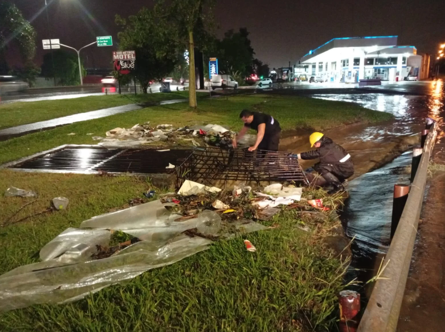 Asimismo, desde la tarde de ayer y a lo largo de la madrugada, cuatro cuadrillas municipales trabajaron de manera permanente en la limpieza de desagües, permitiendo el correcto drenaje del agua de lluvia y contribuyendo a mitigar anegamientos en las calles.