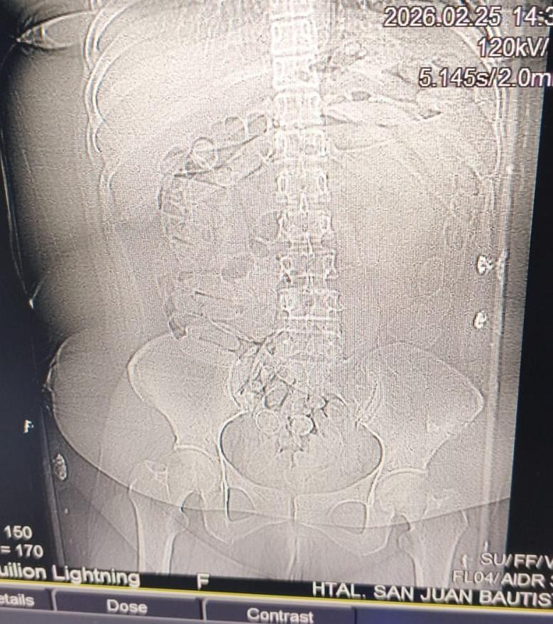 Tras los estudios correspondientes, se constató la presencia de cuerpos extraños en la zona abdominal y en la cavidad genital. Como resultado del seguimiento médico, se confirmó la evacuación de 90 cápsulas.
