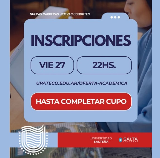 La Municipalidad de Rosario de la Frontera informó que desde este viernes a las 22:00 horas se habilitarán las inscripciones para las distintas propuestas de formación que brinda la Universidad Provincial de Administración, Tecnología y Oficios (UPATECO).