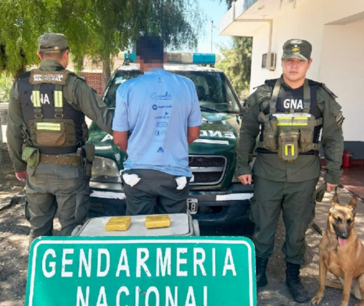 El can antinarcóticos “Eva” alertó a los gendarmes sobre la presencia del estupefaciente a la altura de la cintura del involucrado. Ese detalle derivó en el hallazgo de 1 kilo 111 gramos de la droga.