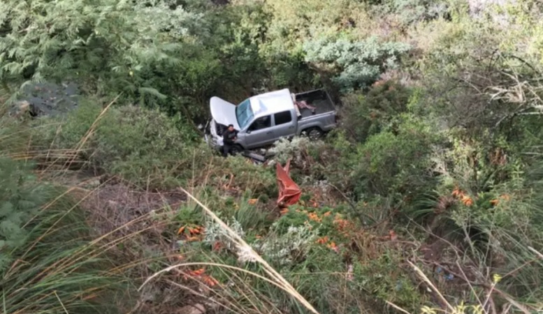 En un intento por evitar el impacto frontal, realizó una maniobra que lo hizo perder el control. La camioneta se precipitó hacia el fondo del barranco, hasta quedar detenida entre la vegetación y las piedras del terreno.