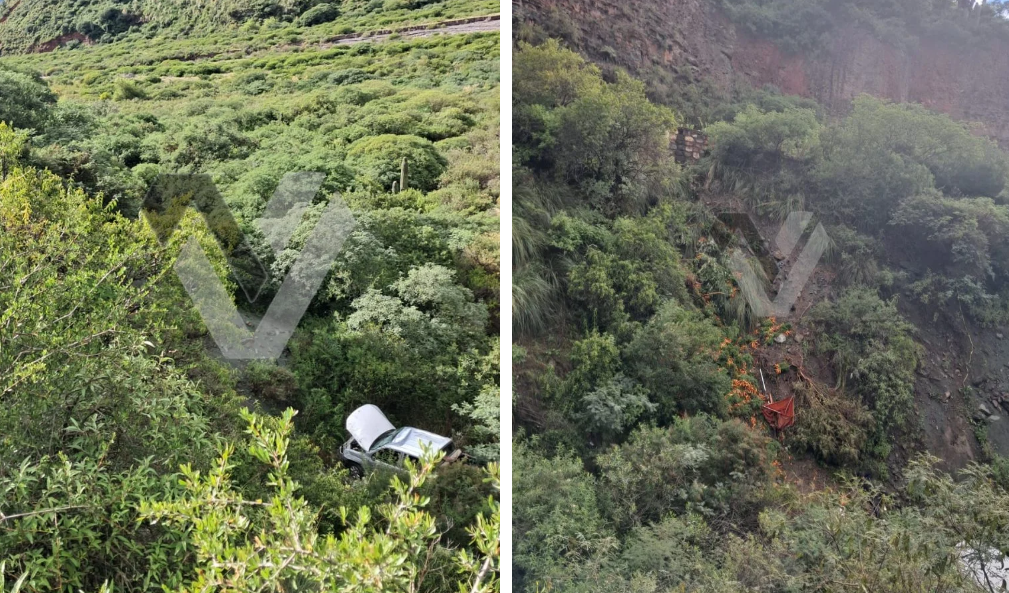 La camioneta, que transportaba un cargamento de zanahorias desde La Poma con destino a Jujuy, había quedado en el fondo del precipicio, y el cargamento de zanahorias han desperdigado por toda la ladera del cerro.